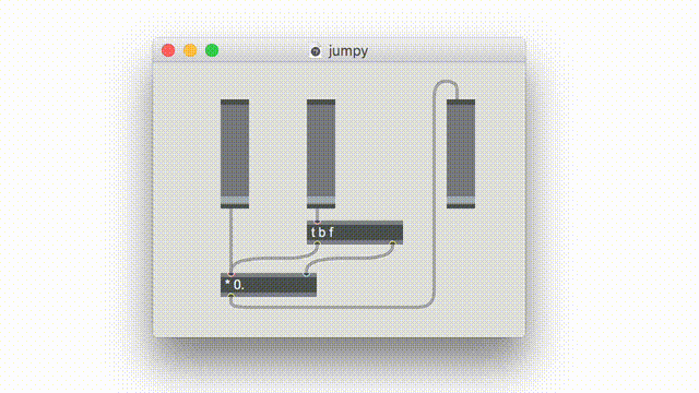 Let's say you have a working patch. You decide that its layout could be a little clearer, so you start moving things around, not changing any patch cords, just moving objects. Then it doesn't work! This can happen because, when an object's outlet goes to more than one destination object, the order of those messages is determined by the position of the destination objects. Layout matters.